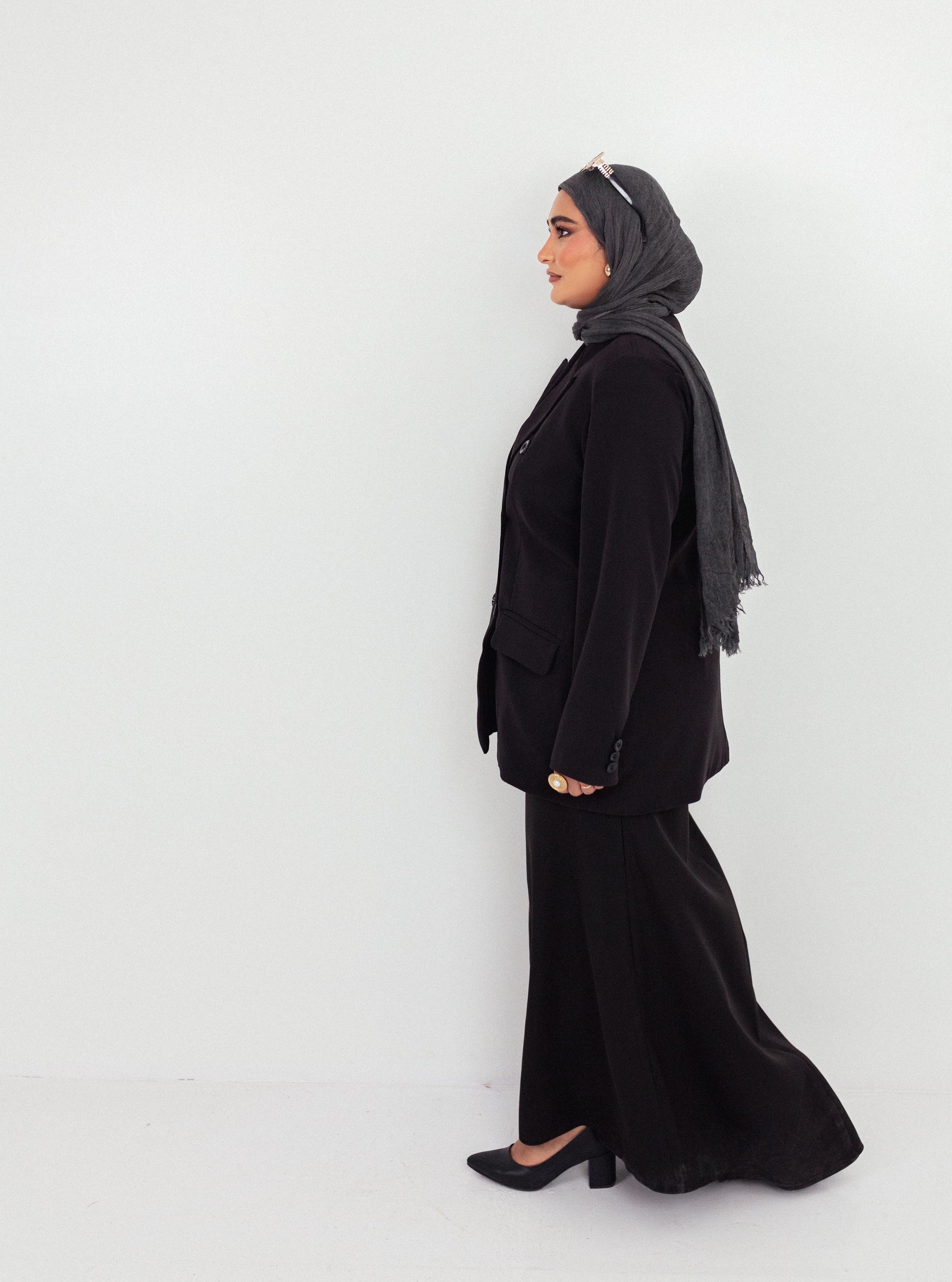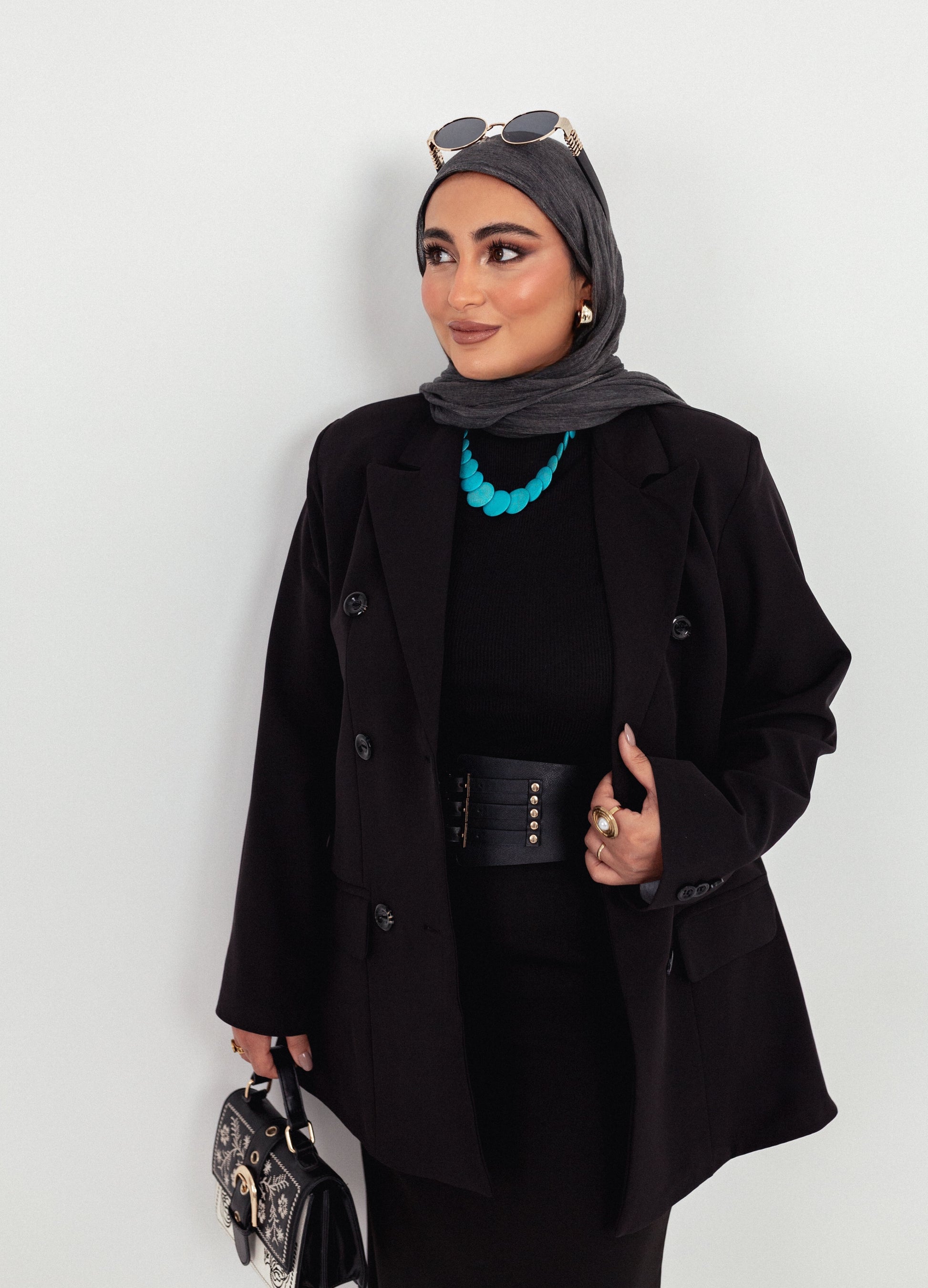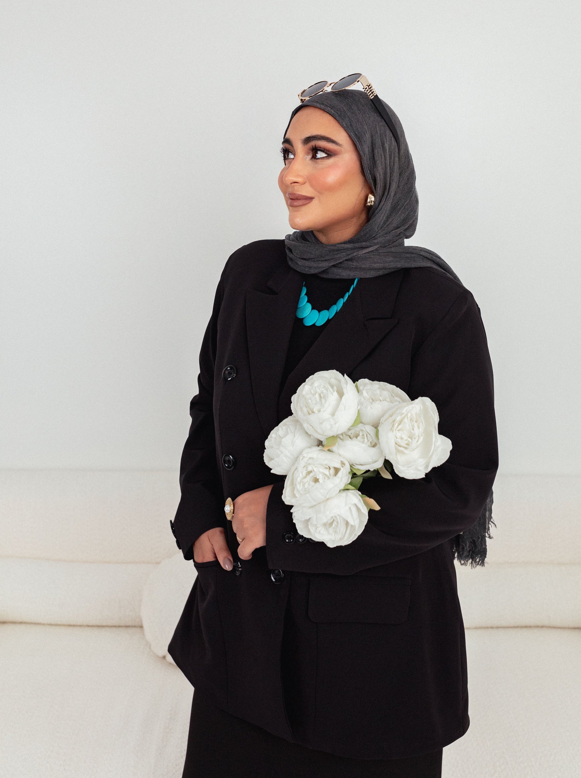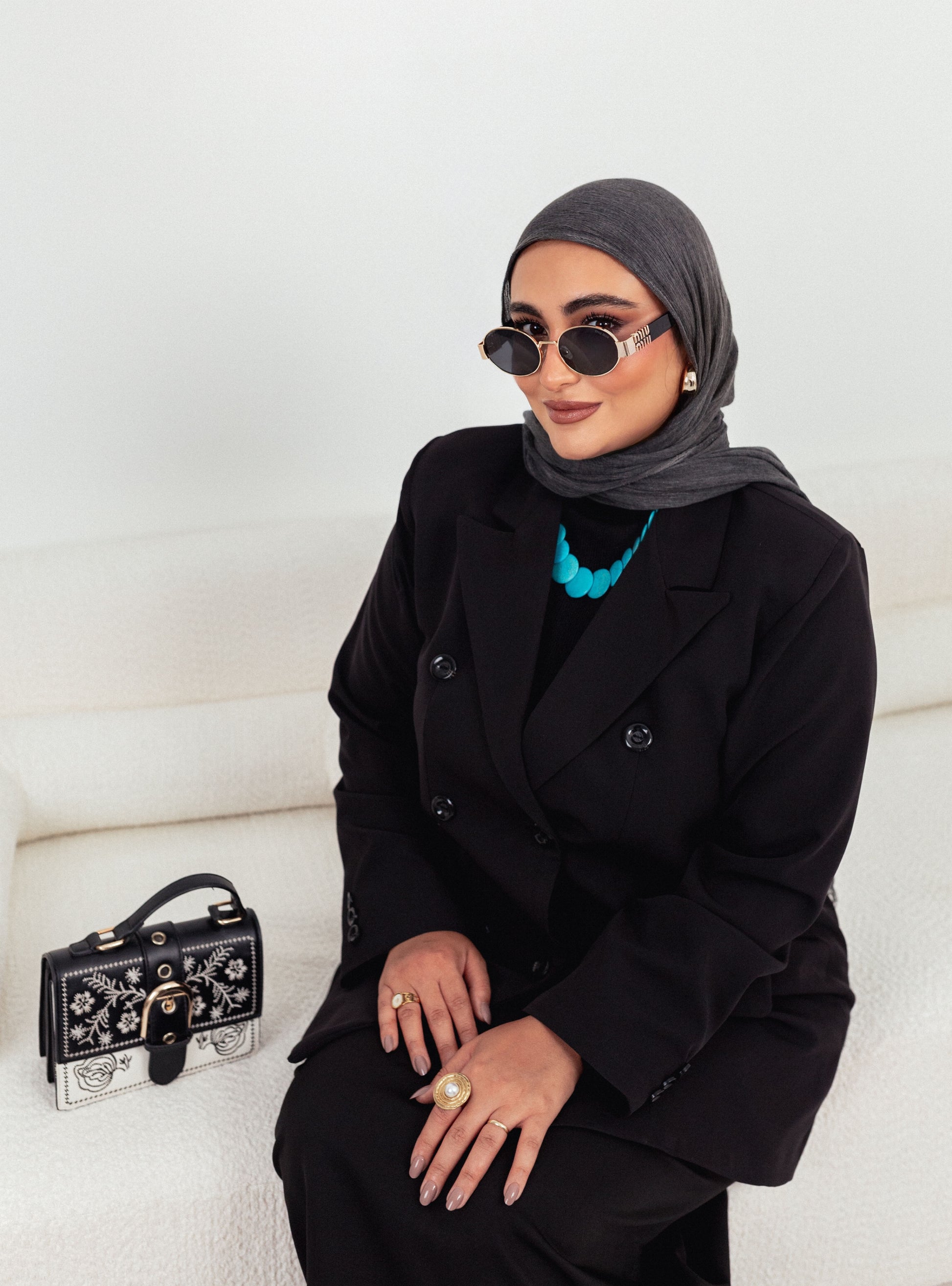 “البدلة السوداء الكلاسيكية المطلقة، مصممة بدقة لتمنحك أناقة في كل خطوة.”